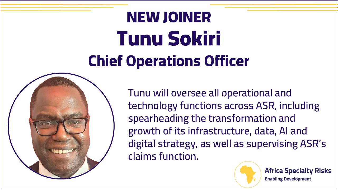 London, 7 October 2025 – Africa Specialty Risks (“ASR”), the developing markets focused (re)insurance group, announces the appointment of Tunu Sokiri as chief operations officer.