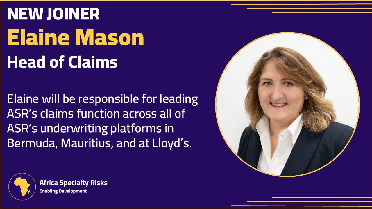 London, 13 October 2025 – Africa Specialty Risks (“ASR”), the developing markets focused (re)insurance group, announces the appointment of Elaine Mason as Head of Claims.